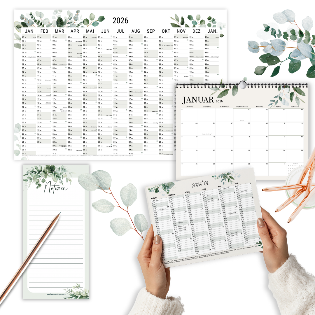 heaven+paper® Kalender Set 2026 Greenery XL 5-teilig